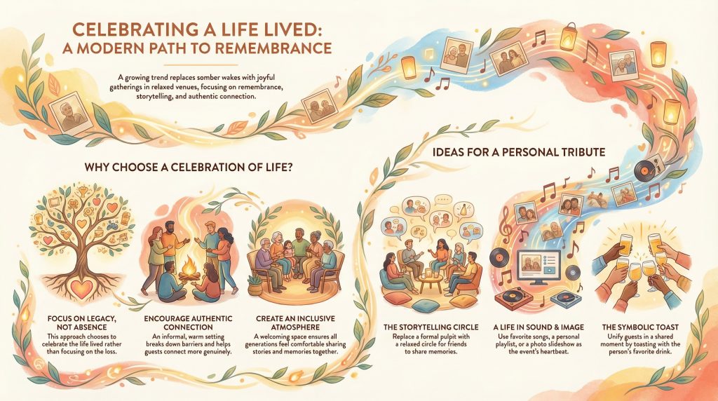There is a growing, beautiful trend in how we say our final goodbyes. For many, the traditional, somber wake is