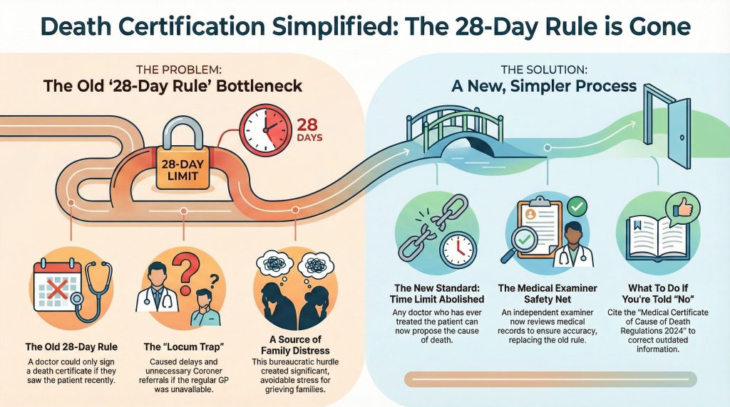 One of the most frequent causes of distress for grieving families is being told: “The GP can’t sign the death